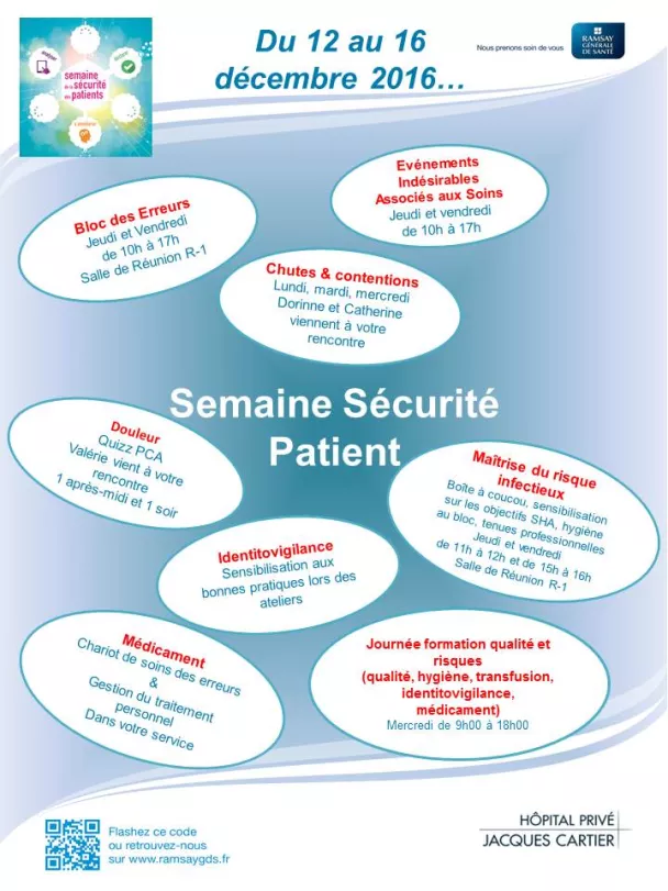 Du 12 au 16 décembre, l’Hôpital Privé Jacques Cartier organise sa Semaine Sécurité Patients :